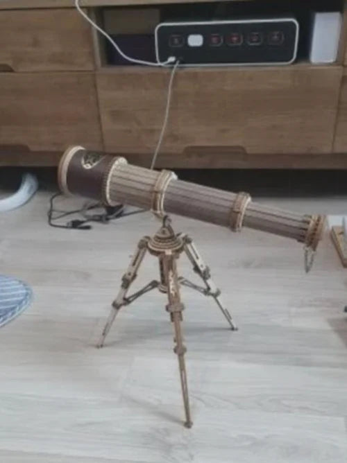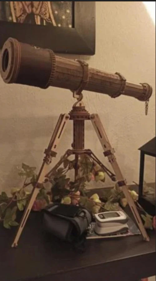 Dette vintage-teleskop har en tydelig struktur og inkluderer et udtrækkeligt beslag for ekstra funktionalitet.