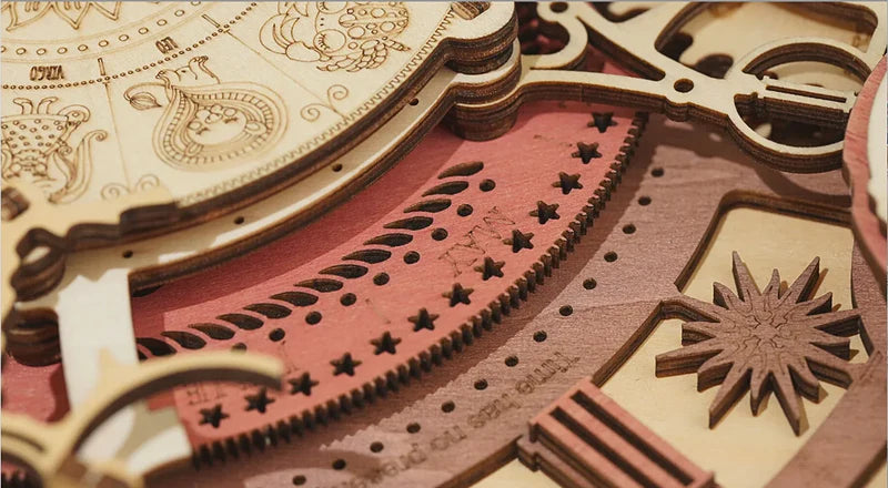 Urskiven, der er indgraveret med de tolv stjernetegn, udstråler en følelse af vintage-elegance