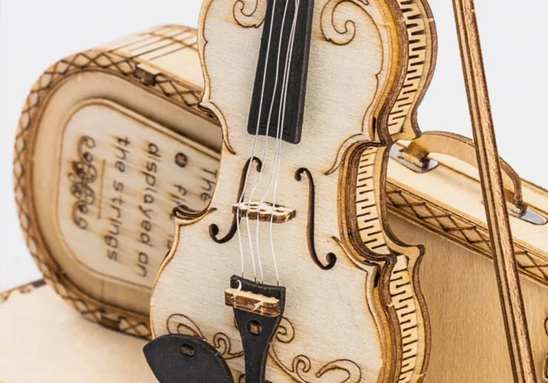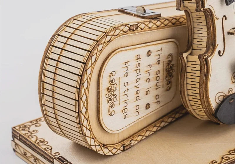 Hvert element i dette mekaniske 3D-spilledåsepuslespil, fra kabinettet til strengene, er fremstillet med præcision ved hjælp af materialer af høj kvalitet og laserskåret teknologi.