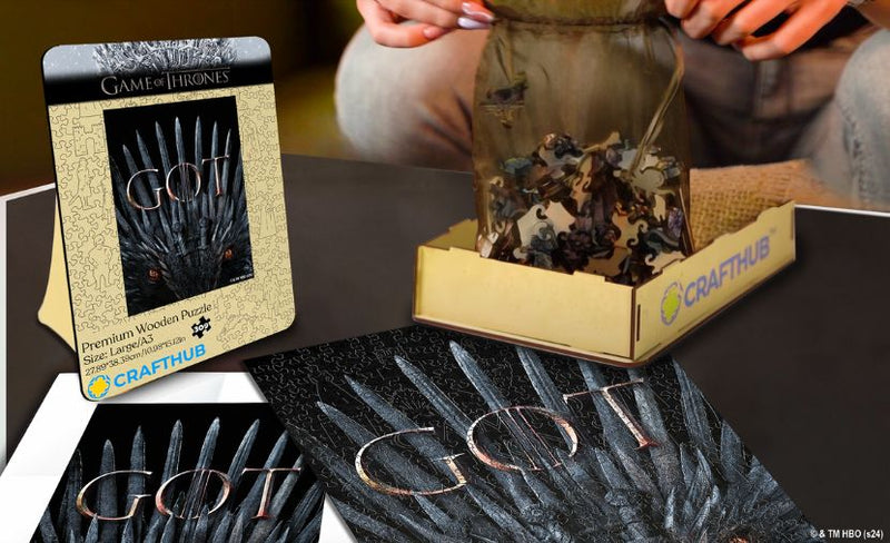 Med originale illustrationer direkte fra den episke sagas film fejrer denne serie af puslespil foreningen af autentiske 'Game Of Thrones'-billeder med den fineste puslespilskunst.