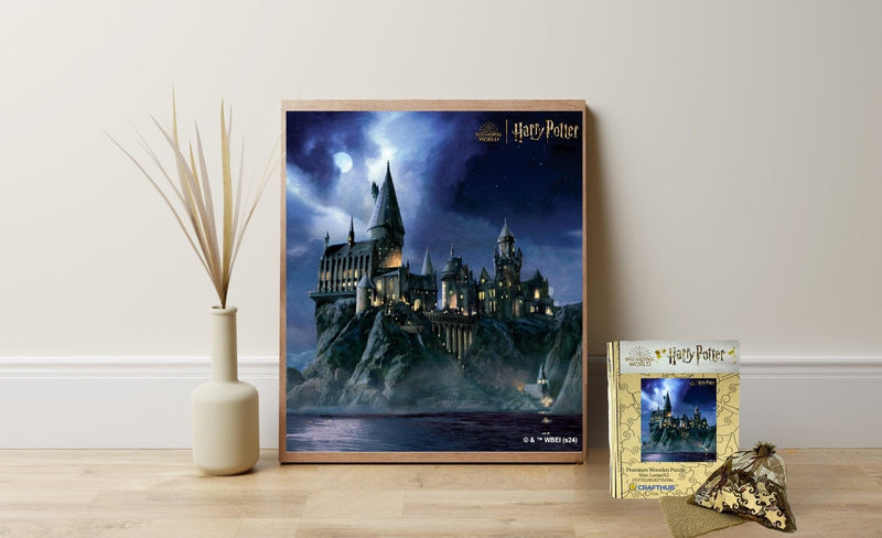 Ved hjælp af avancerede UV-printteknikker fremhæver puslespillet Hogwarts-slottets indviklede detaljer og farver under den lyse stjernehimmel og skaber et imponerende kunstværk, når det er færdigt.