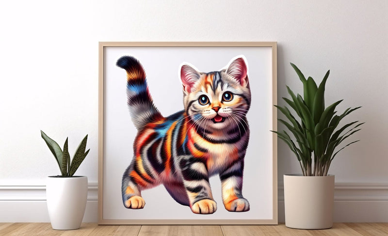 Avanceret UV-printteknologi sikrer et lyst og levende kattedesign, der bliver til et fantastisk kunstværk, når det er færdigt.