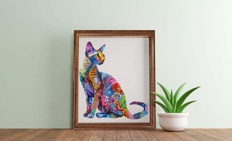 Avanceret UV-printteknologi sikrer et lyst og levende kattedesign, der bliver til et fantastisk kunstværk, når det er færdigt.