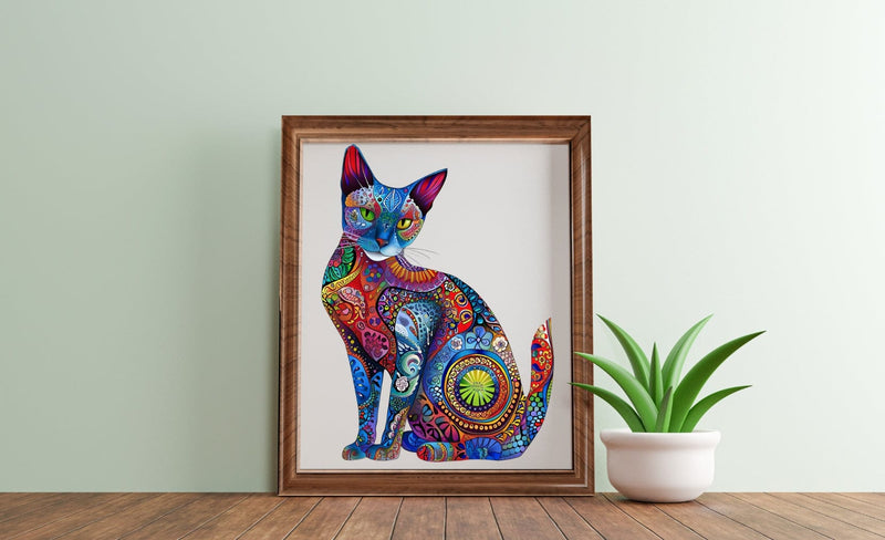 Avanceret UV-printteknologi sikrer et lyst og levende kattedesign, der bliver til et fantastisk kunstværk, når det er færdigt.