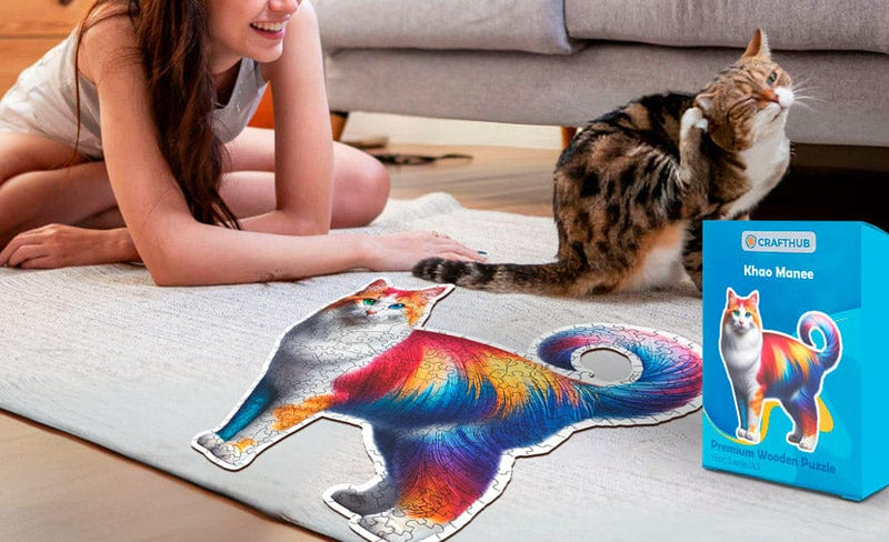 Dyk ned i en stor fejring af kattes skønhed med vores træpuslespil, der viser over 50 unikke katteracer fra hele verden.