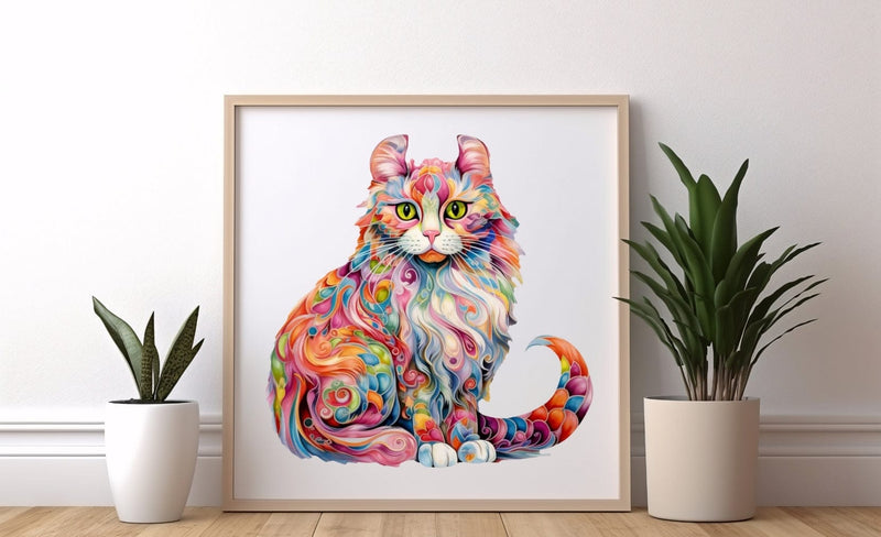 Avanceret UV-printteknologi sikrer et lyst og levende kattedesign, der bliver til et fantastisk kunstværk, når det er færdigt.