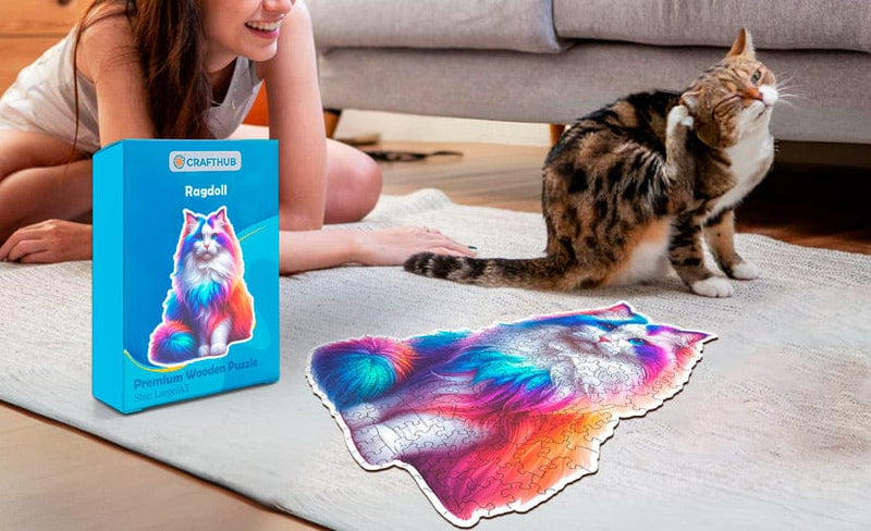 Dyk ned i en stor fejring af kattes skønhed med vores træpuslespil, der viser over 50 unikke katteracer fra hele verden.