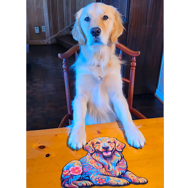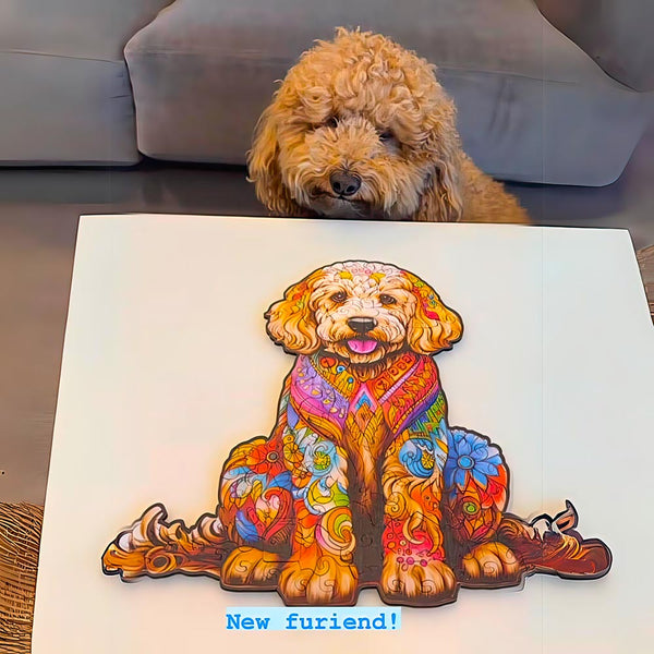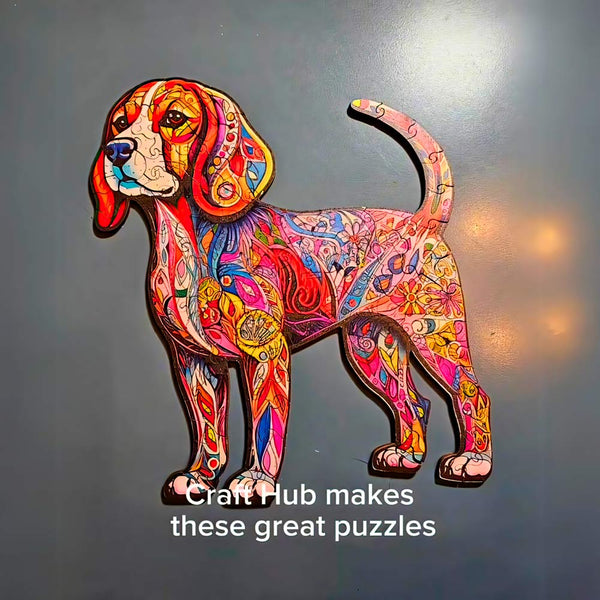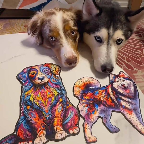 Træbrikker af høj kvalitet i forskellige hundeformer var nemme at manipulere uden at bekymre sig om, at de skulle falde fra hinanden som et traditionelt puslespil.