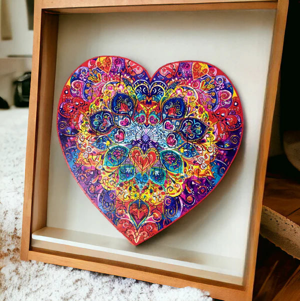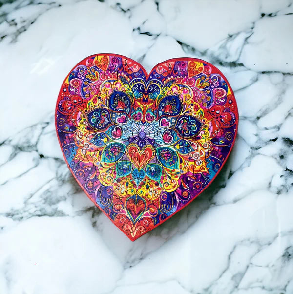 Puslespillet er en fortryllende blanding af intrikat design og opmærksomt samling. Hver brik passer sømløst ind i den næste, hvilket skaber et fantastisk mandala-mønster, der både er beroligende og fængslende.
