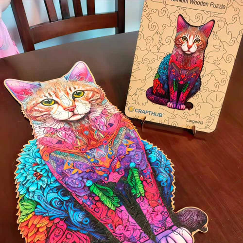 Farverig. En drøm for katteelskere. Jeg nød virkelig at sætte den sammen. Delene er af fremragende kvalitet.