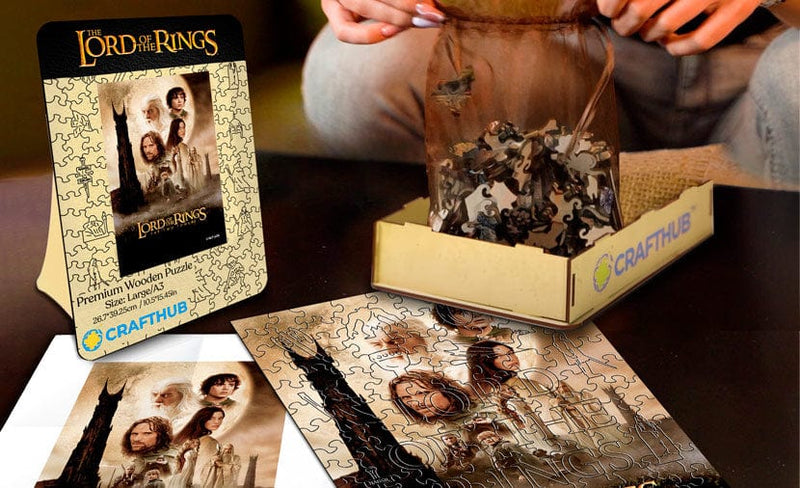 Med originale illustrationer direkte fra den episke saga's filmiske kilde fejrer denne serie af puslespil foreningen af autentiske 'Ringenes Herre'-billeder med den fineste puslespilskunst.