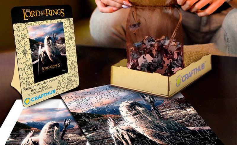 Med originale illustrationer direkte fra den episke saga's filmiske kilde fejrer denne serie af puslespil foreningen af autentiske 'Ringenes Herre'-billeder med den fineste puslespilskunst.