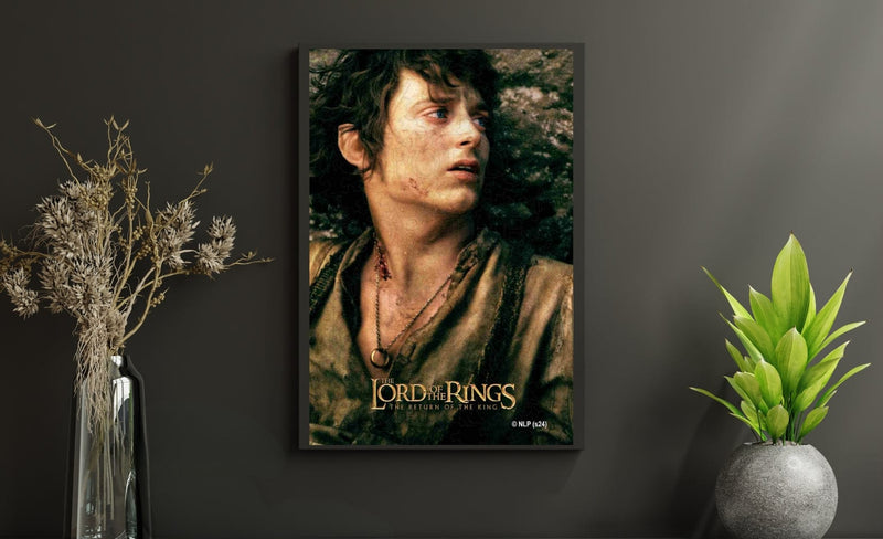 Jeg kan ikke bære det for dig, men jeg kan bære dig." Dette puslespil fanger den rå beslutsomhed og den tunge byrde, der er ætset i Frodos ansigt, da han nærmer sig slutningen på sin opslidende rejse til Mount Doom."