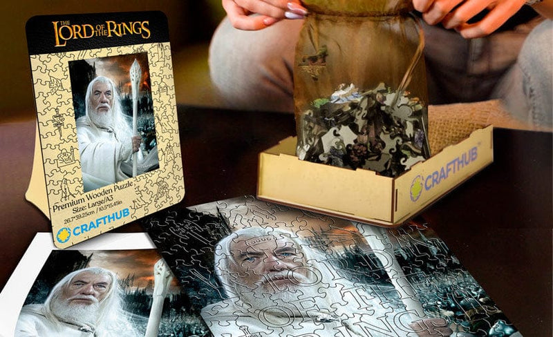 Med originale illustrationer direkte fra den episke saga's filmiske kilde fejrer denne serie af puslespil foreningen af autentiske 'Ringenes Herre'-billeder med den fineste puslespilskunst.