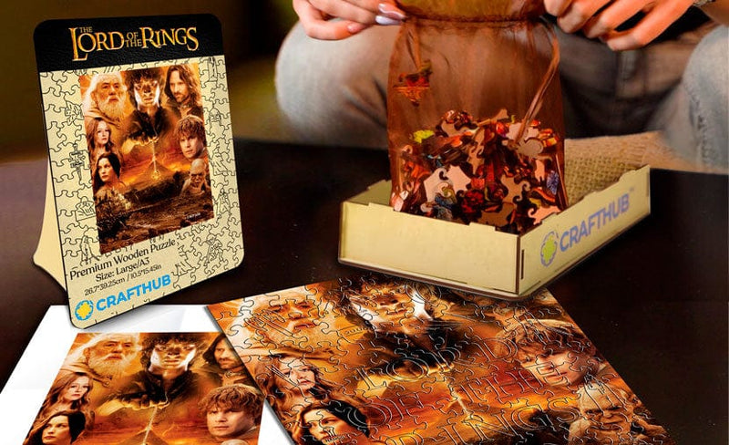 Med originale illustrationer direkte fra den episke saga's filmiske kilde fejrer denne serie af puslespil foreningen af autentiske 'Ringenes Herre'-billeder med den fineste puslespilskunst.