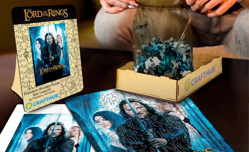 Med originale illustrationer direkte fra den episke saga's filmiske kilde fejrer denne serie af puslespil foreningen af autentiske 'Ringenes Herre'-billeder med den fineste puslespilskunst.