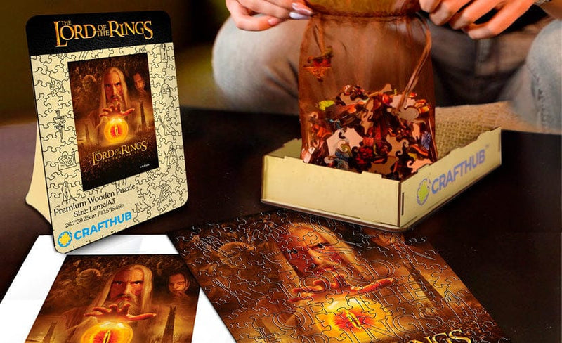 Med originale illustrationer direkte fra den episke saga's filmiske kilde fejrer denne serie af puslespil foreningen af autentiske 'Ringenes Herre'-billeder med den fineste puslespilskunst.