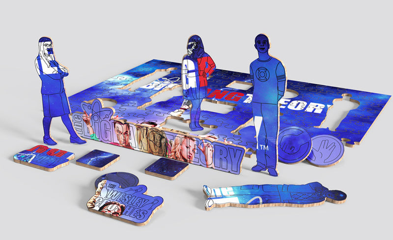 Fejr seriens genialitet med unikt formede puslespilsbrikker som Sheldon, Penny, DNA-strenge, den ikoniske sofa, videnskabelige elementer, Bazinga-talebobler og meget mere.