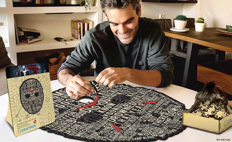 Med hver brik vækker du de tågede skove i Camp Crystal Lake til live, den truende silhuet af Jason Voorhees og den isnende atmosfære, der hjemsøger hvert eneste skridt og legemliggør rædslen fra Fredag den 13.