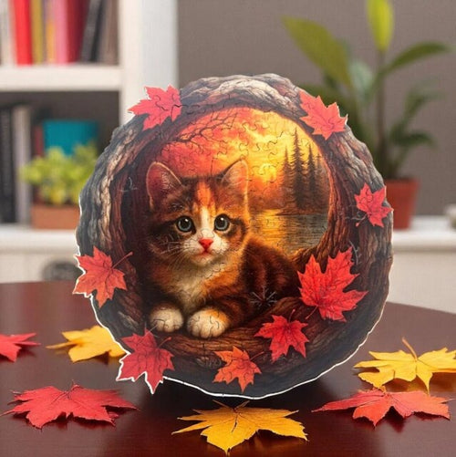 Jeg kunne ikke stoppe med at smile, mens jeg satte dette billede sammen. Efterårsfarverne og den søde killing er den perfekte kombination. Jeg overvejer at indramme det – det er så smukt.